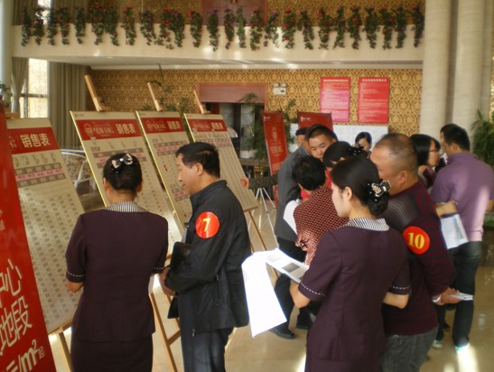 (第一批进入选房的客户在认真选房)