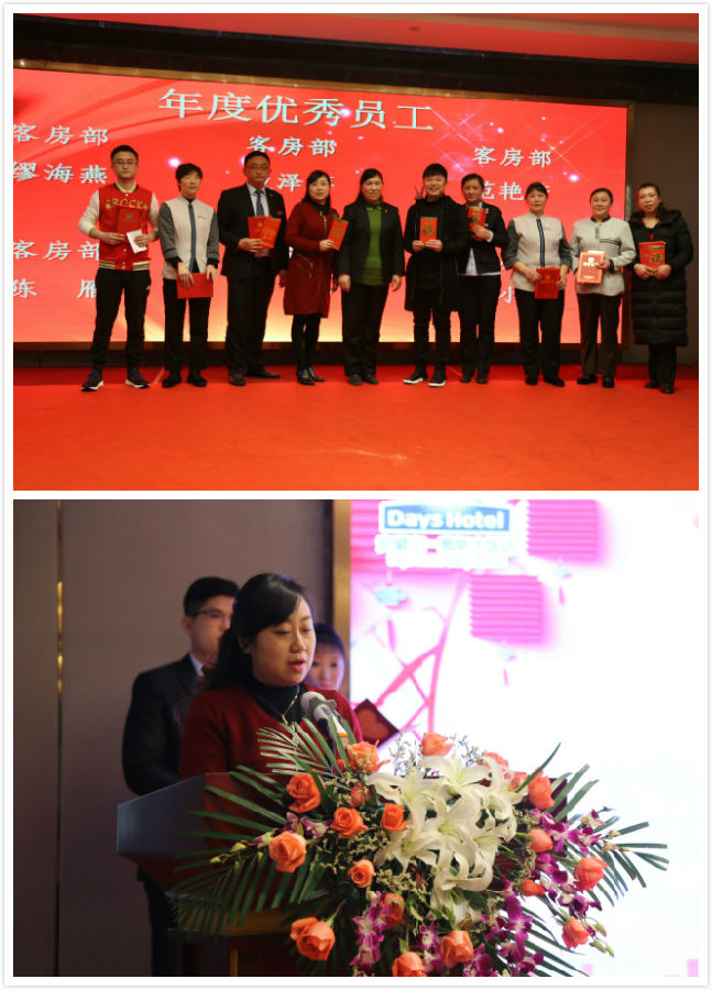 一分耕耘,一份收获。2016年,全体文一戴斯人勠力同心,兢兢业业,取得了丰硕成果和可喜成就。在春节联欢会上,酒店还进行了酒店先进集体奖金发放,并隆重表彰了2016年在各个岗位上取得突出成绩的员工及团队。现场颁发了优秀管理者、优秀员工、销售之星、服务之星、忠诚卫士等众多奖项,孙总、史总亲自为获奖员工颁发了证书和奖金。