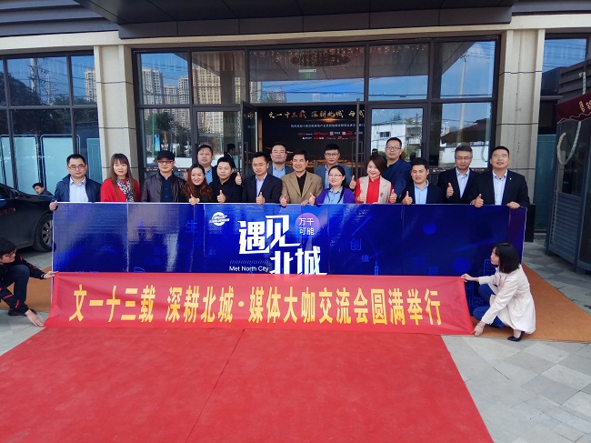 随后各位媒体大咖就北城的发展、建设规划,以及文一·锦门北韵项目展开热烈讨论。会后,文一领导以及十家媒体大咖共同在锦门北韵营销中心门口合影留念,本次交流会取得圆满成功。
