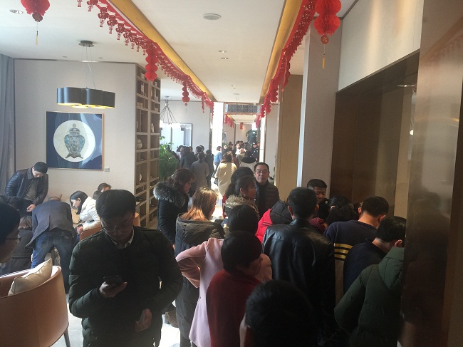开盘当天,签到区域早早就排起了长队,爆棚人气可见一斑。现场人头攒动,却又井然有序地翘首以待,足见文一准业主们的高素质修养。
