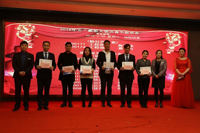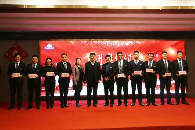 2017年,全体文一戴斯人勠力同心,兢兢业业,取得了丰硕成果和可喜成就。在春节联欢会上,酒店对先进集体给予了现金奖励,并隆重表彰了2017年在各个岗位上取得突出成绩的员工。现场颁发了优秀管理者、优秀员工、销售之星、服务之星等众多奖项,韦书记、孙总、史总亲自为获奖员工颁发证书和奖金。
