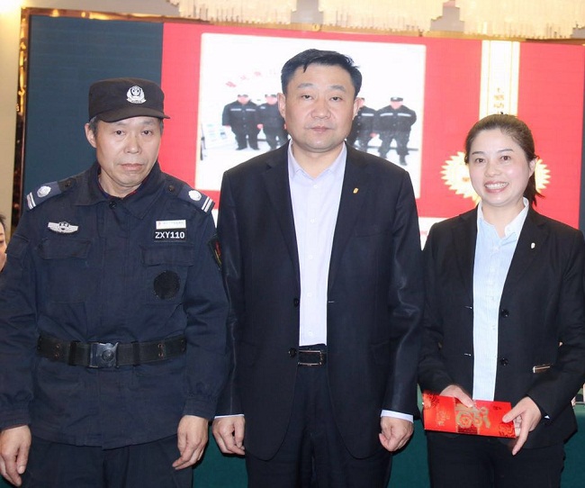 (文一集团副总裁朱红敏为名门南郡综合维修员“冰花叔叔”张大文颁发特别贡献奖)