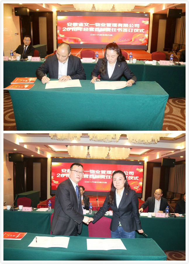 会上,文一物业总经理赵虹与各城市公司负责人分别签署目标责任书,为2018年经营目标的完成打下坚实基础。