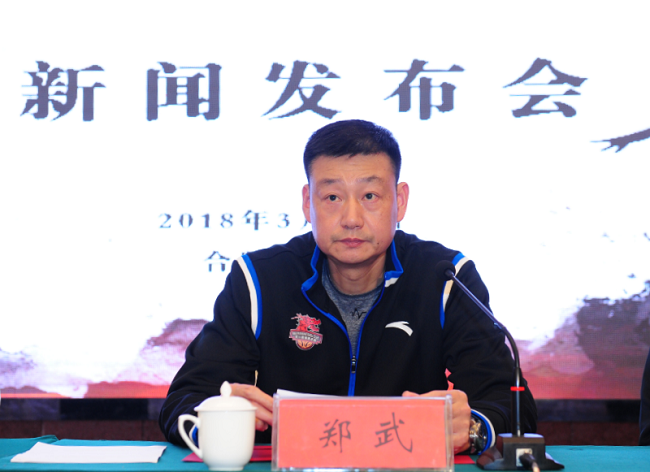 (文一篮球俱乐部领队郑武作新闻发布)