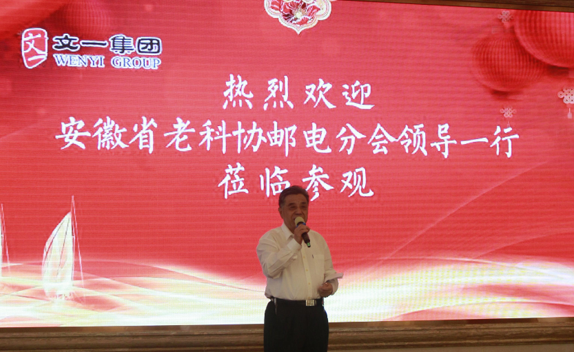文一集团董事长周文育在致辞中首先对邮电分会领导们的到来表示欢迎,并指出,老科协邮电分会成立较早,协会成员在安徽邮电系统的建立、发展过程中做出了重要贡献,文一的发展也离不开老邮电系统各位领导的关心呵护,能够为协会服务,每年请各位老领导到文一来走一走看一看,我们倍感荣幸。集团今后也将全力支持协会工作,希望协会老领导们在白马山度过一个美好愉快的周末,祝愿大家身体健康、平安幸福。