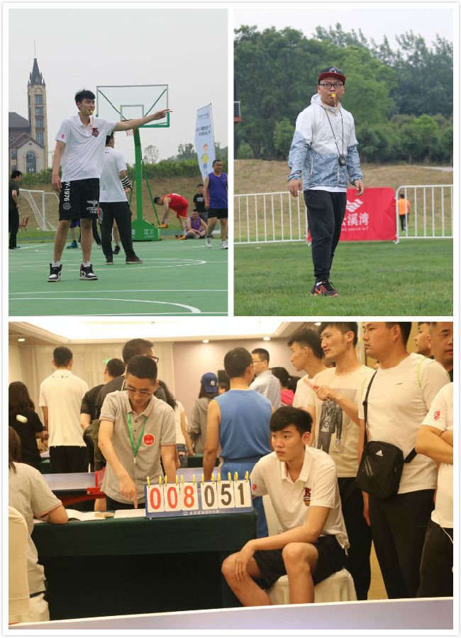 本次运动会共分竞技、趣味、棋牌三大类比赛,设置有长跑、短跑、4×100接力、3人篮球、4人足球、乒乓球、拔河、赛船、真人CS、五子棋、掼蛋、跳绳等12个比赛项目。其中,篮球、足球、乒乓球一二轮预赛及棋牌类比赛于5月11日下午提前举行。篮球和足球作为两大球比赛,颇具对抗性,自然也成为全场观战的焦点,场上激烈比拼,各自攻防,场下互致敬意,友谊第一。乒乓球作为国球运动,比赛现场更是吸引了众多粉丝围观,球手们一个精彩漂亮的旋铲、吊角或扣杀,无不引来如潮叫好声。棋牌类比赛考验的是个人能力和团队配合,一念之间,胜负可能逆转,极具观赏性。
