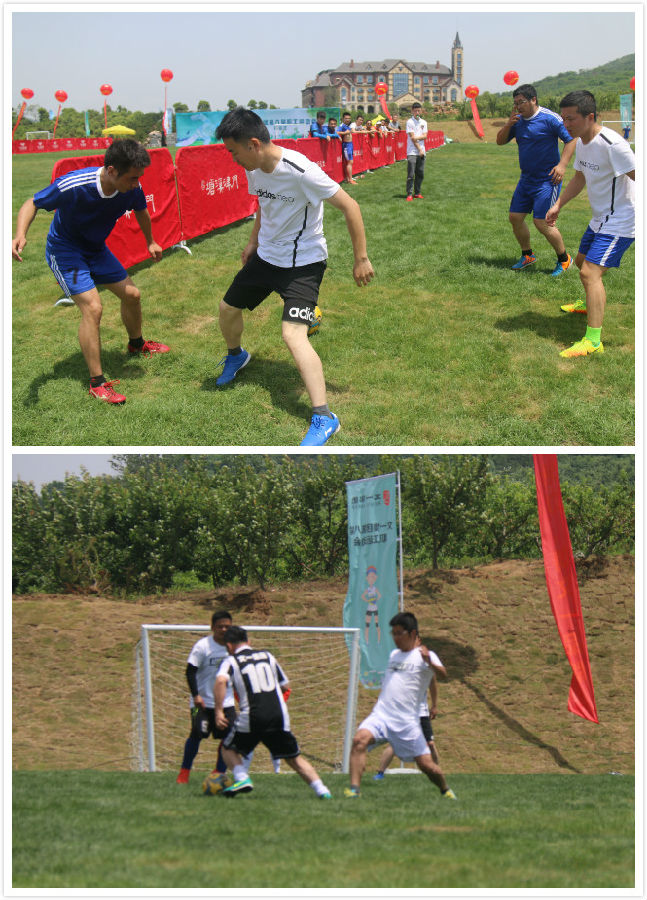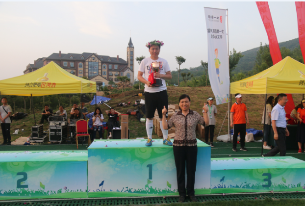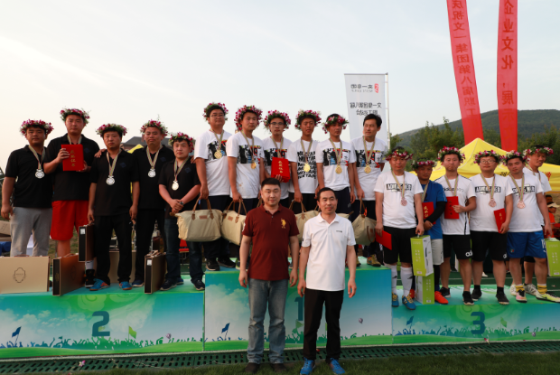 足球比赛现场,双方参赛队员在绿茵场上移位奔跑,抢断、带球、传球、逼近、射门,凭借脚下功夫和缜密的技战术配合完成一次次进球。成功PK掉实力强劲的多个对手后,包河酒业集团代表队杀出重围,登顶冠军。