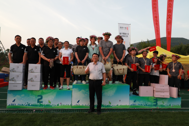 5月13日,在结束最后一项拔河项目比赛后,文一集团第八届职工运动会比赛环节宣告结束。在激昂的音乐声中,集团高层等为获奖团队及个人颁奖,本届职工运动会圆满闭幕。