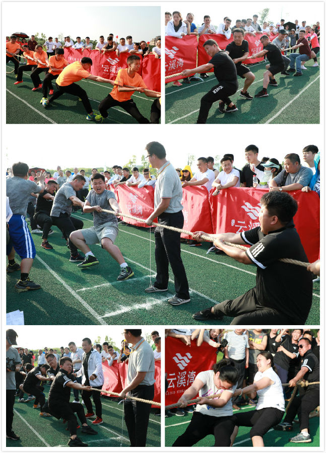 拔河比赛同样精彩,双方马步稳扎,使出浑身力气,高喊着“一二一”的节拍,麻绳准心在中间区域来回移动,直至决出胜负,体力是决定因素,同样也考验团队协作。