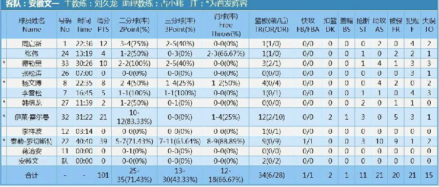 全场比赛,罗切斯特砍下39分、10次助攻和9个篮板的准三双数据,霍尔曼贡献27分和16个篮板,周启新得到14分,杨文博11分。德勒黑也有10分进账,全队一共投中14个三分,命中率接近44%。
