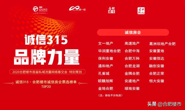 3月16日,“诚信315·合肥楼市2020诚信品牌房企票选活动”结束,合肥诚信房企榜单出炉。文一地产从61家品牌房企竞争中脱颖而出,荣登榜单首位,文一·塘溪津门项目荣获“合肥诚信楼盘”榜单TOP10。