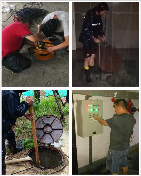 各条线人员分头奋战在重大设施、设备房等区域,用水泵抽水;