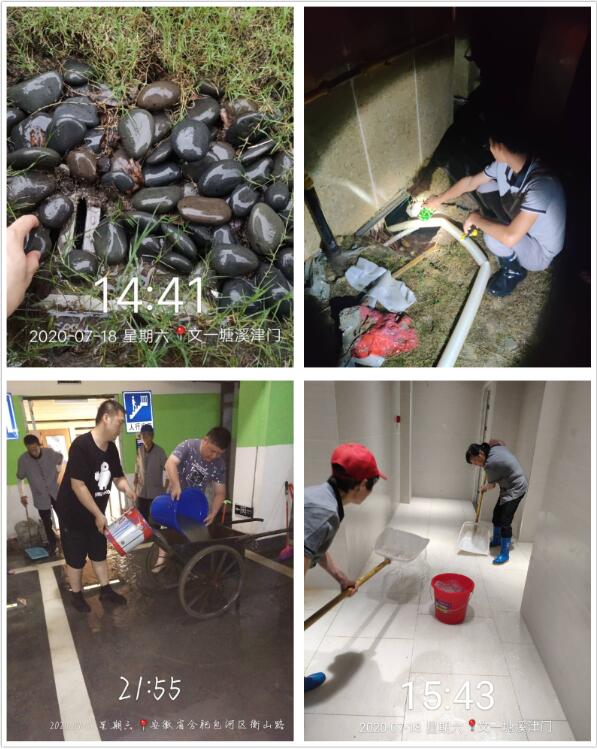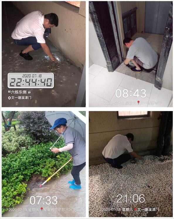 文一滨江物业要求各服务中心对防汛防涝的设施、外墙悬挂物、地下室(消防设备、二次供水设备、热交换设备、泳池设备、楼宇对讲、监控设备、电梯设备、车场系统设备、供配电设备、排污设备、排烟送风设备)、地下车库、雨水管道等进出口处进行全面认真检查,同时要求各项目每天统计汇报当天受灾情况,处理进度。