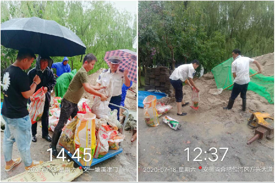 各级员工积极响应公司号召,临危不乱,全体工作人员全力以赴,齐心协力,冒雨涉水共同投入到抗洪抢险行动中。