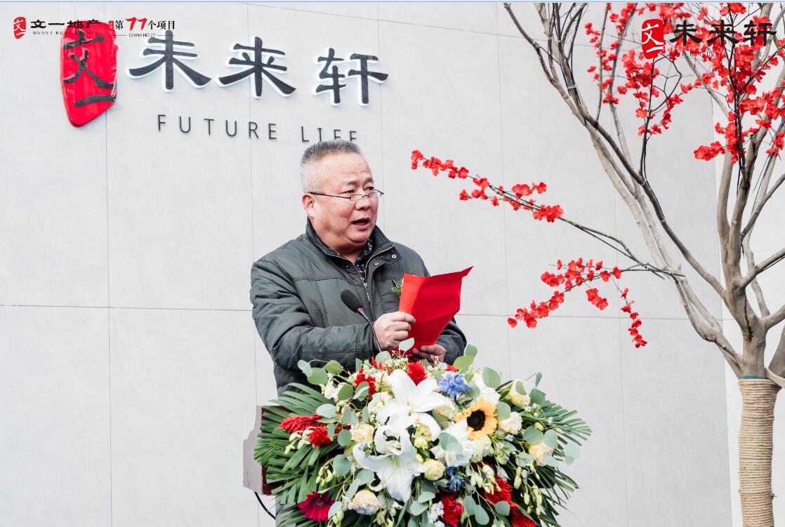 随后,在热烈的掌声中,文一房地产集团合肥东区城市公司副总裁/肥东置业公司总经理叶士贤先生登台,发表了热情洋溢的致辞。他表示,文一·未来轩作为文一地产东城战略性作品,从择址之初就精心规划,在产品的打造上更是传承千年的新中式美学,未来将为东城带来更具格调的品质人居生活。