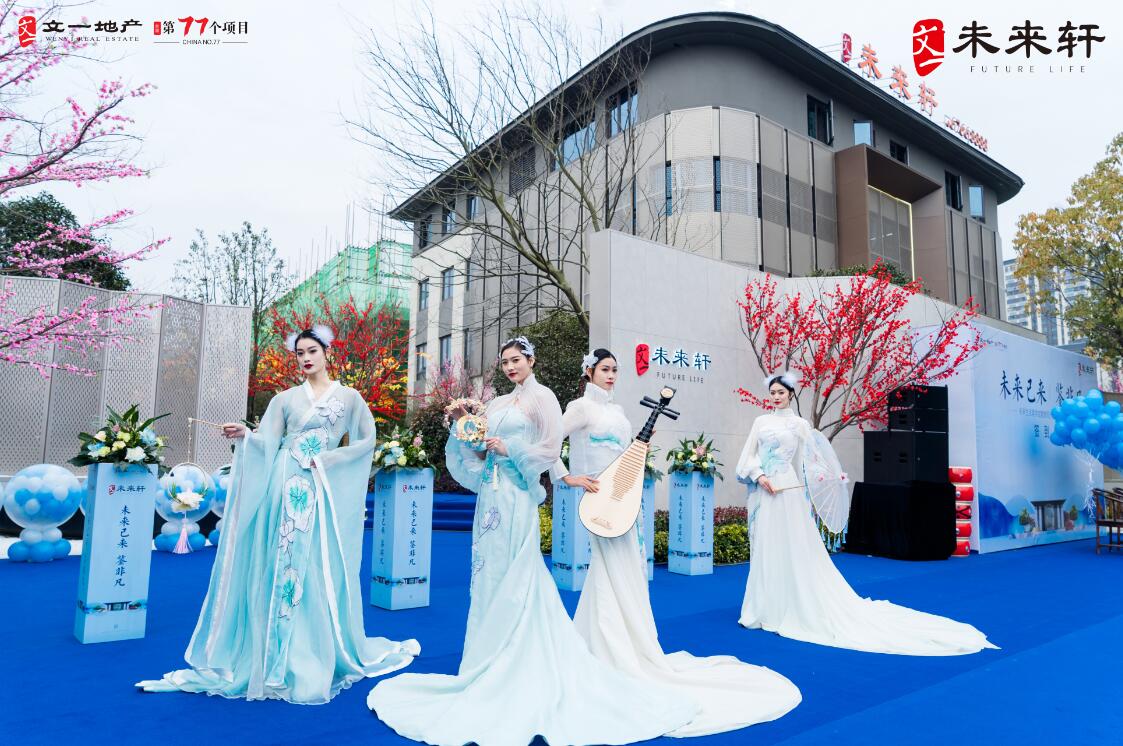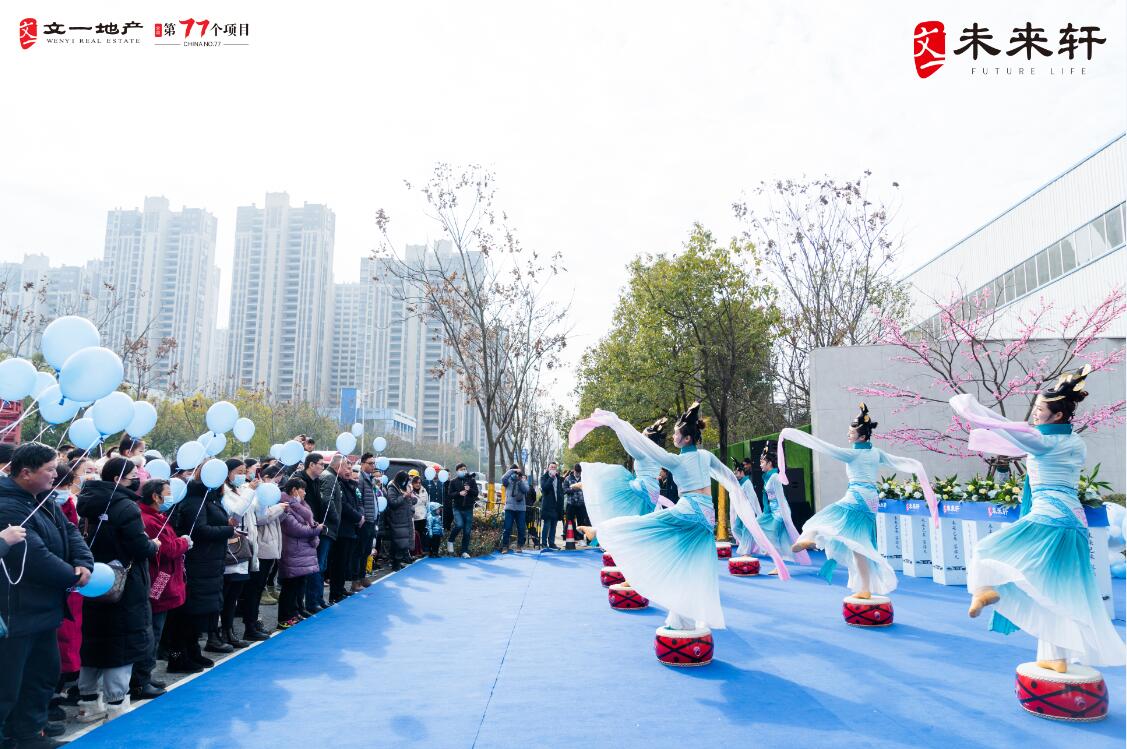 一舞千年,华乐响起,顶尖舞团携《相和歌》国舞登场,为嘉宾上演传承千年的盛世乐舞,嫣然舞动之间再现古风盛世,与新中式建筑国风雅颂的宏大气魄相得益彰,这也与文一·未来轩传承新中式美学的理念不谋而合。惊艳的乐舞表演,让现场客户眼前一亮,纷纷鼓掌欢呼。