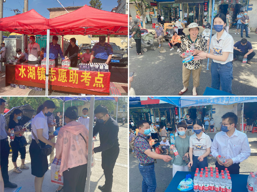 当一瓶瓶满载着祝福与爱心的矿泉水和扇子送到考生家长手里时,考生家长们的焦灼逐渐退去,考生们的斗志也因陌生人的鼓励更加昂扬,文一酒店集团全体员工也坚信考生们定能“乘风破浪、金榜题名”。