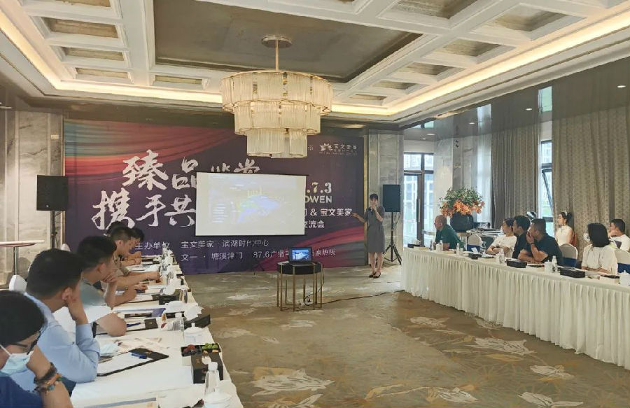 在参观完营销中心后,合肥家居建材品牌精英企业家一行人便来到营销中心三楼,在宝文美家商管公司总经理章滨先生牵头下进行交流,一同探索后疫情时代之下,家居行业与商办公寓市场携手共赢的新航向。大家纷纷表示面对当下大环境,无论是家居业,还是地产业,都应回归初心,从原点谈产品思维,只有以过硬产品力说话,才能迎来更长远、更全面的发展。