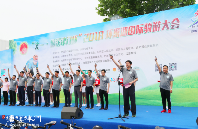5月26日上午,“文一·塘溪津门杯”2018环巢湖国际骑游大会在美丽的巢湖之畔盛大开幕。