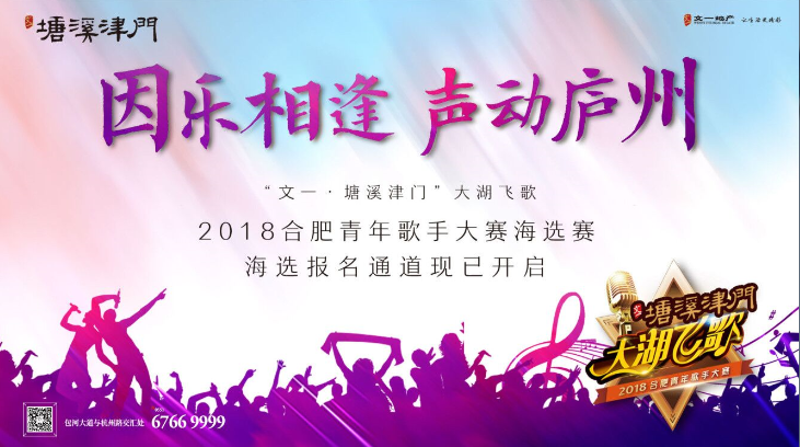 一年一度,全新启动,文一·塘溪津门“大湖飞歌”2018合肥青年歌手大赛即日起开始报名啦!
