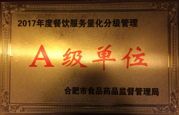 5月23日,合肥市瑶海区2017年度餐饮A级单位授牌仪式上,合肥市食品药品质量监督管理局公布“瑶海区2017年度餐饮服务食品安全量化分级管理A级单位”名单,文一餐饮旗下文一戴斯大饭店和一品宴铜陵路店荣耀上榜。