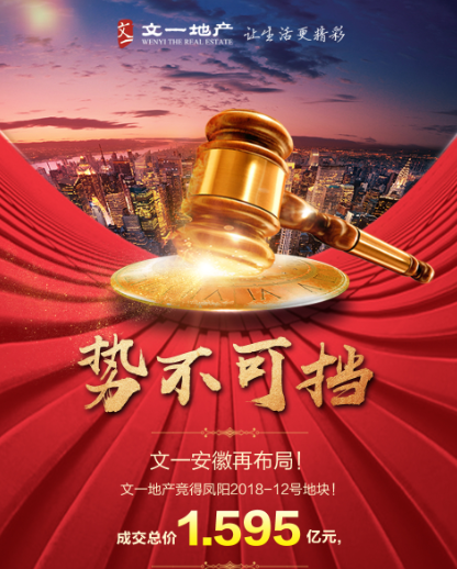 文一地产皖北再下一城!4月20日,文一地产以总价1.6亿元竞得凤阳县2018-12号商住地块,于皖北地区再度落子,项目正式定名为“文一·云水湾”。