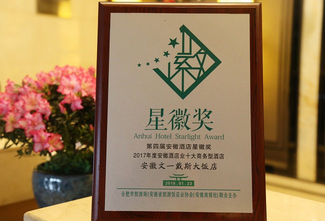 1月23日,由合肥市旅游局、安徽省旅游饭店业协会、安徽商报社联合举办的第四届安徽酒店星徽奖颁奖盛典圆满落幕。安徽文一戴斯大饭店凭借其一流的设施和服务品质及为宾客提供的难忘体验,荣膺“2017年度安徽酒店业十大商务型酒店”、“2017年度安徽酒店业宾客