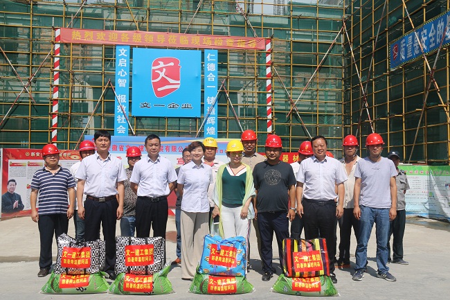 盛夏来临,烈日炎炎。为切实保障职工的生命安全和身心健康,7月11日上午,文一集团副总裁、工会主席、品牌战略部主任薛英姿,建工集团总裁兼文一建安公司总经理童乃兵,副总裁兼文一建安常务副总经理陈明章,文一建安公司副总经理赵梅生等领导一行深入各在建项目进行