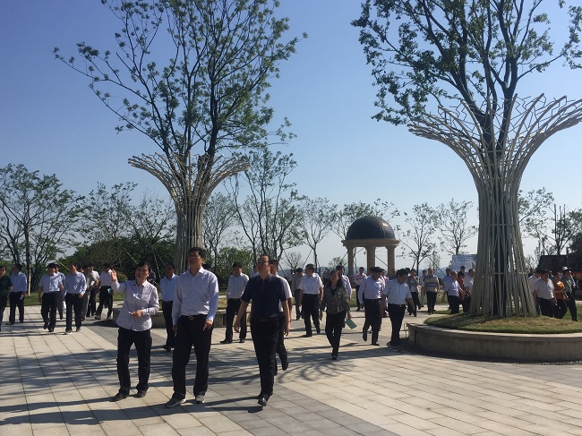 5月17日,县委副书记、县长孙良鸿,县人大常委会主任余永松,县政协主席干文宏,县委副书记盛开等领导一行共150余人莅临白马山国家篮球公园调研指导。集团副总裁、党委副书记朱红敏向考察团一行汇报了文一·白马山篮球公园建设及规划发展情况。