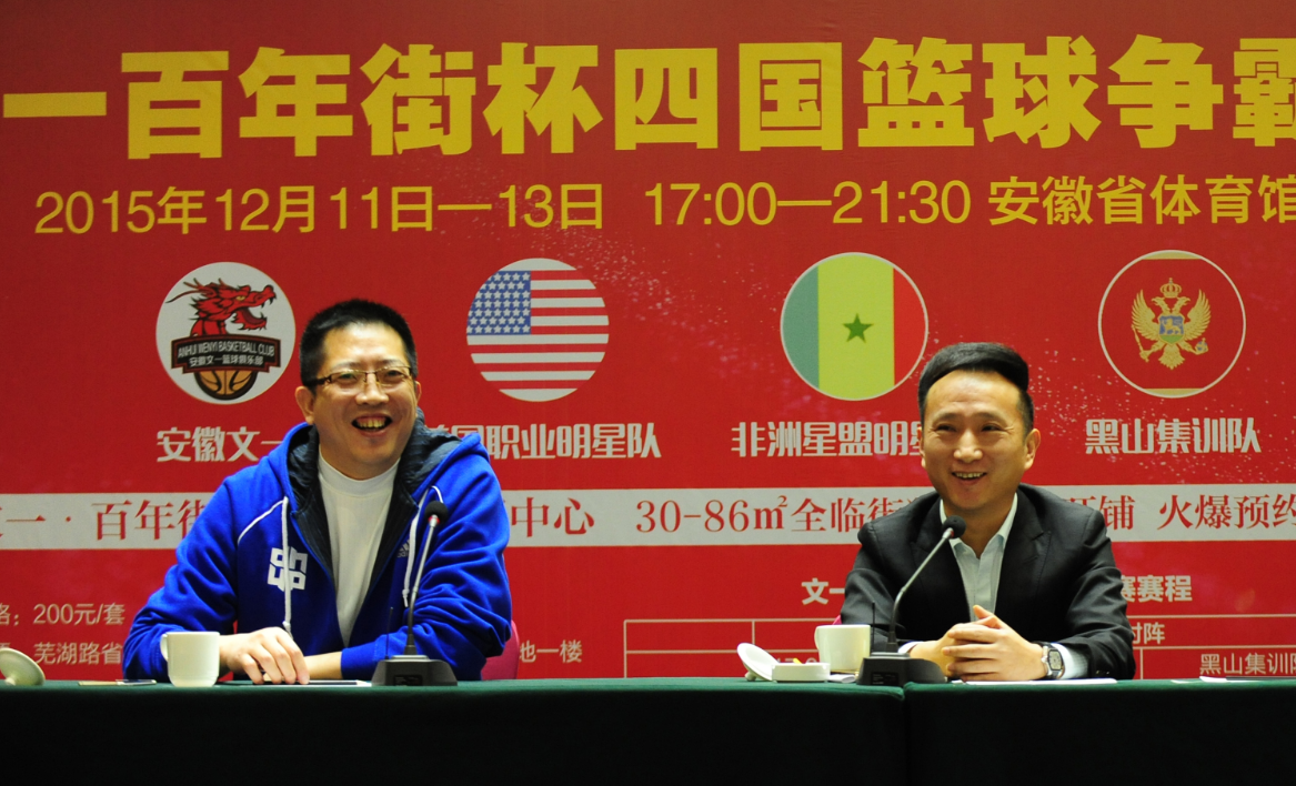 11月11日上午,文一·百年街杯四国篮球争霸赛新闻发布会在安徽文一戴斯大饭店隆重举行。12月11日至13日,安徽文一篮球俱乐部将坐镇安徽省体育馆,迎来与黑山集训队、非洲星盟明星队和美国职业明星队的巅峰对决。安徽文一篮球俱乐部总教练胡卫东在当天的新闻发